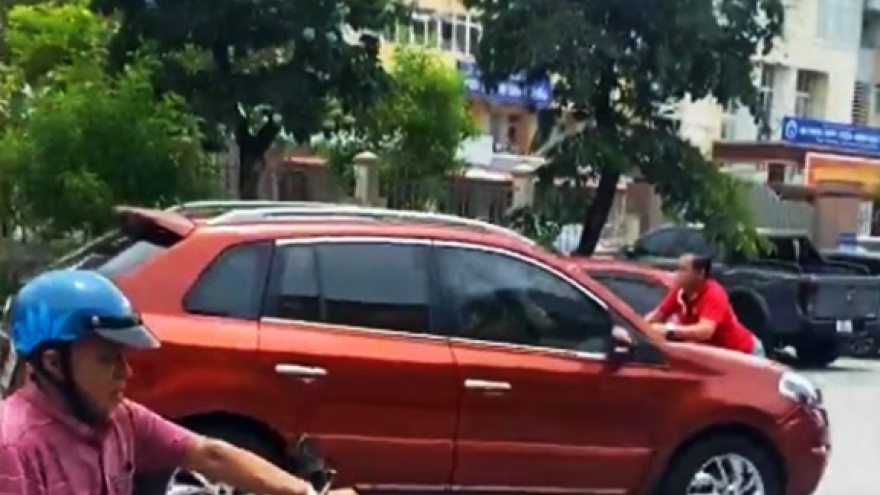 VOV.VN - Sau va chạm giao thông, 2 người đàn ông cãi vã và xô đẩy nhau trên đường. Khi một người lên xe ô tô chuẩn bị rời đi thì người còn lại đến trước đầu xe ô tô. Xe bắt đầu di chuyển, người đàn ông bám lên nắp capo và bị đẩy một đoạn đường mới dừng lại.