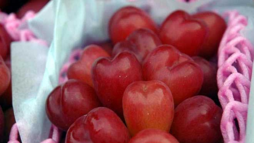 VOV.VN - Theo giới thiệu, đây là loại nho Nhật Bản chất lượng loại 1, hàng về theo đường hàng không 100%. Giống nho này hình trái tim vô cùng lạ mắt, hương vị đậm đà kích thích vị giác.
