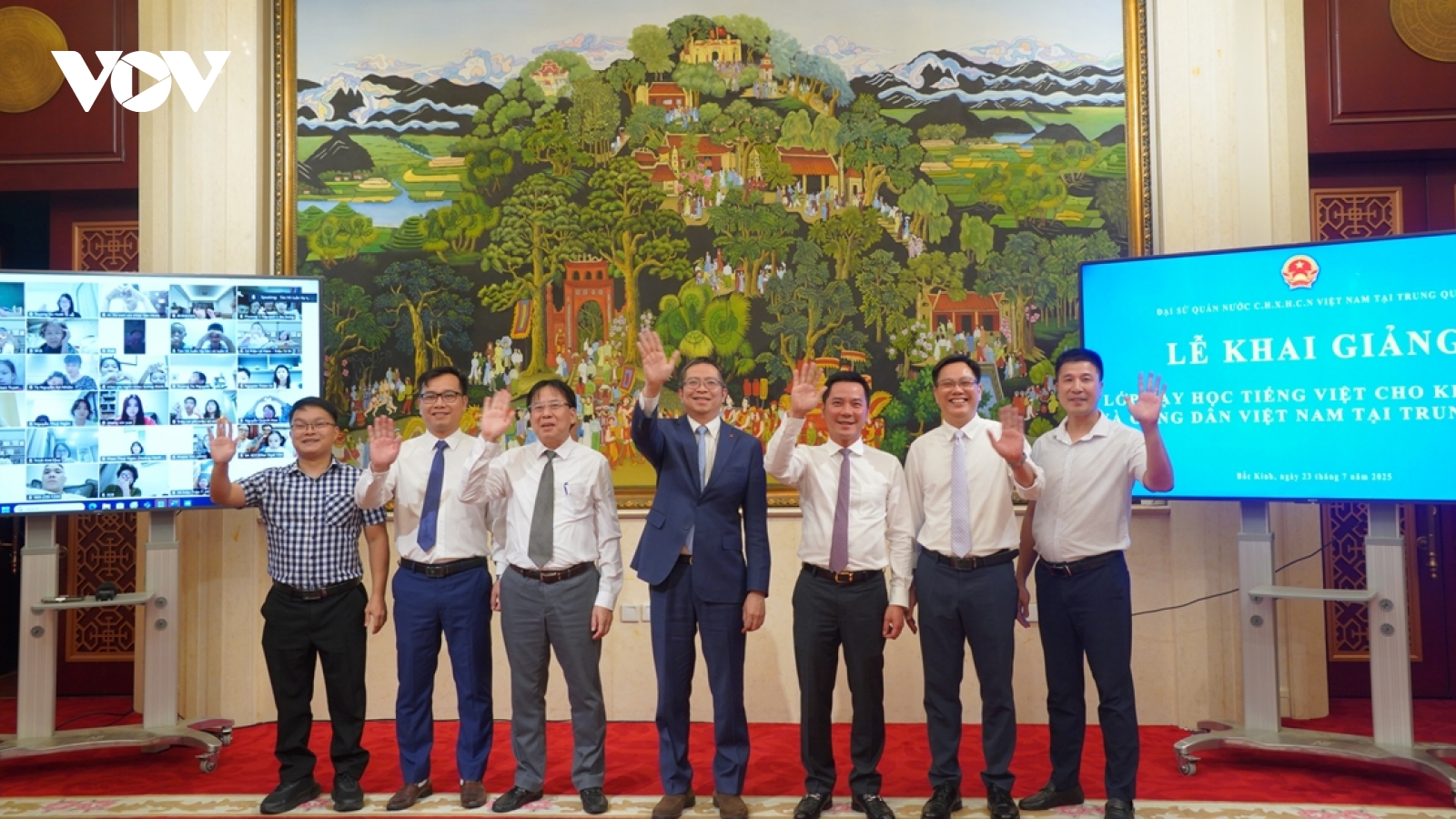 VOV.VN - Tối 23/7, Đại sứ quán Việt Nam tại Trung Quốc đã tổ chức Lễ khai giảng lớp tiếng Việt trực tuyến đầu tiên dành cho kiều bào và công dân Việt Nam đang sinh sống, học tập, làm việc tại Trung Quốc. Việc tổ chức lớp học nhằm thực hiện chỉ đạo của Thủ tướng Chính phủ Phạm Minh Chính mới đây.