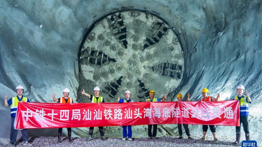 VOV.VN - Hôm qua (26/3), Trung Quốc đã đào thông hầm đường sắt cao tốc xuyên biển có tốc độ 350 km/giờ đầu tiên trên thế giới, với việc lập nhiều kỷ lục trong xây dựng đường hầm xuyên biển.