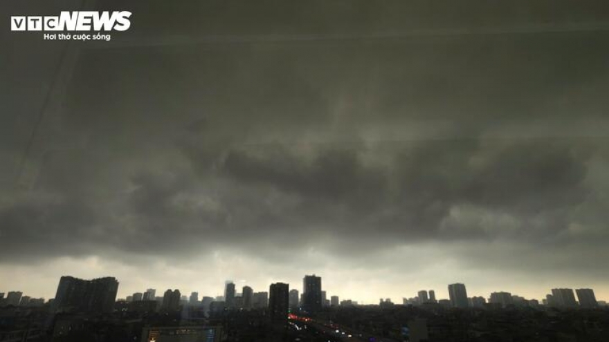 VOV.VN - Lúc gần 9h sáng nay, bầu trời Hà Nội bất ngờ tối sầm do mây dông phát triển nhanh, cơ quan khí tượng cảnh báo nguy cơ lốc, sét, mưa đá và gió giật mạnh trên diện rộng.