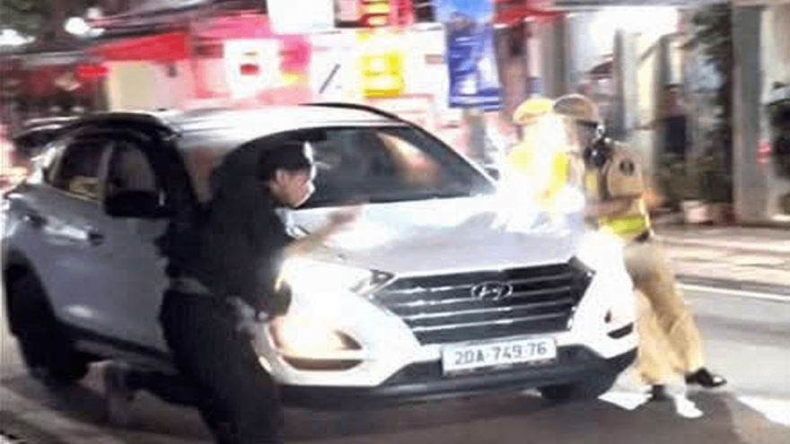 VOV.VN - Công an tỉnh Thái Nguyên vừa tạm giữ Nguyễn Văn Huy, người điều khiển xe ô tô BKS: 20A- 749.76 trong người có nồng độ cồn trong hơi thở là 0,392mg/lít khí thở, thay vì dừng để kiểm tra thì Huy lại tông thẳng vào tổ công tác.