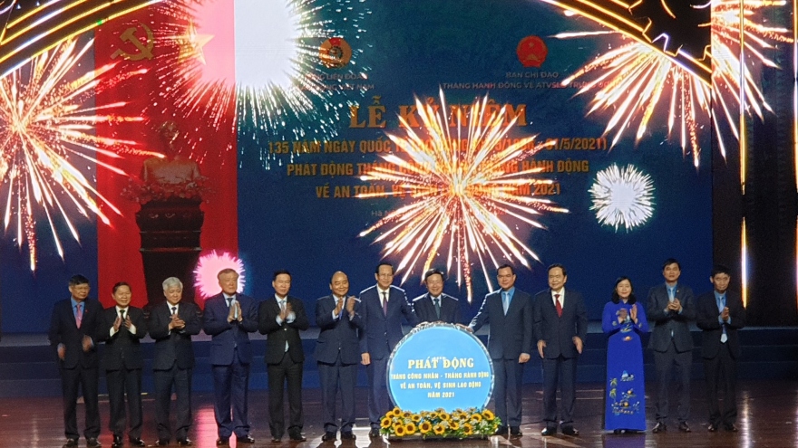 VOV.VN - Sáng nay (28/4), tại Hà Nội, Tổng Liên đoàn Lao động Việt Nam tổ chức Lễ kỷ niệm 135 năm Ngày Quốc tế Lao động (1/4/1866-1/5/2021) và Phát động Tháng Công nhân năm 2021.