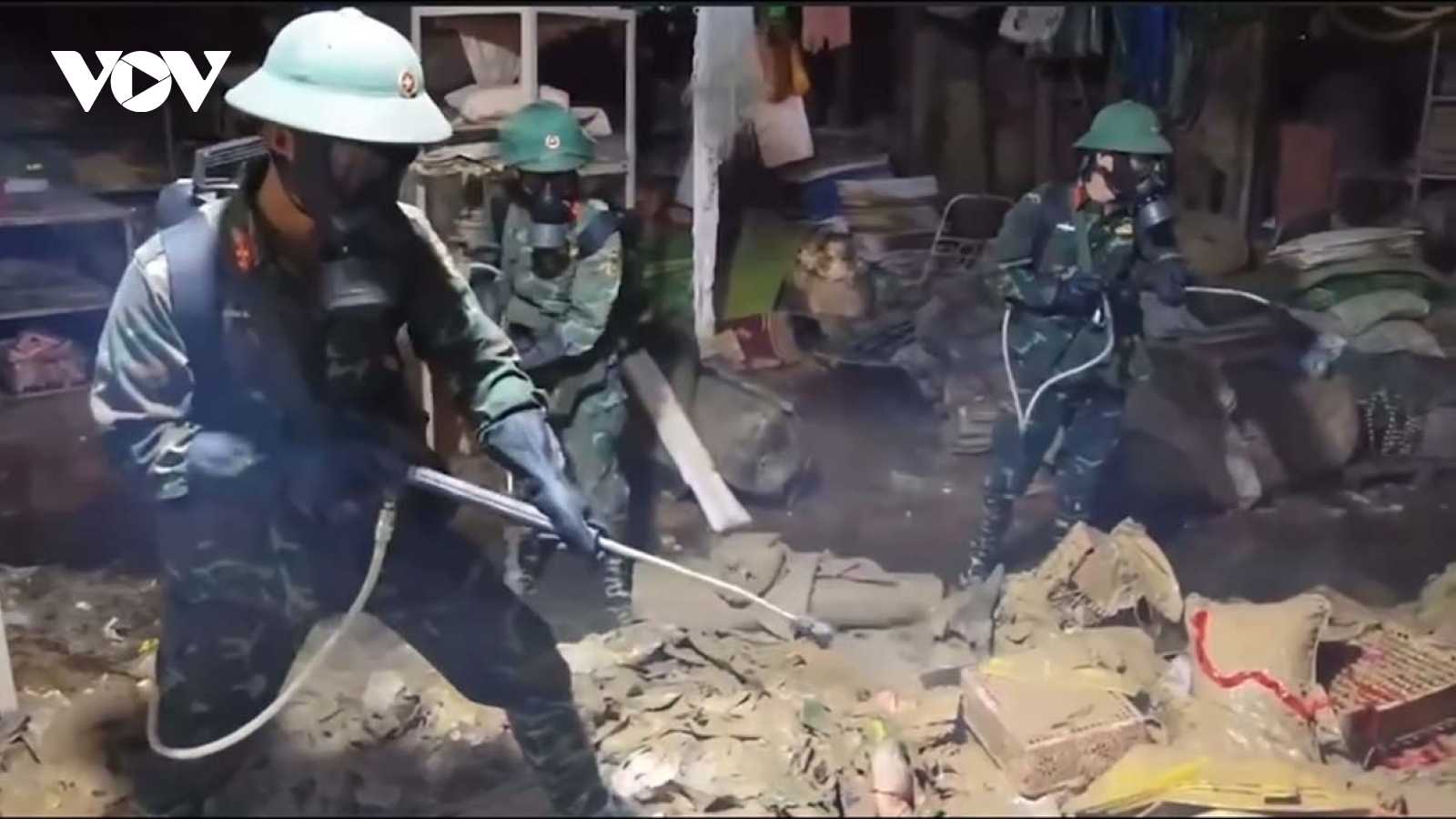 VOV.VN - Sau khi các lực lượng cứu hộ, cứu nạn cơ bản hoàn thành nhiệm vụ và cơ động trở về đơn vị, cán bộ, chiến sĩ Lữ đoàn 86 - Binh chủng Hóa học (Bộ Quốc phòng) tiếp tục ở lại giúp chính quyền và nhân dân tỉnh Thái Nguyên khắc phục hậu quả môi trường sau mưa lũ.