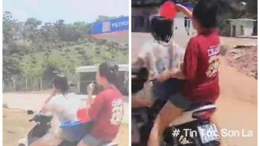 Hai nữ sinh ở Sơn La vừa lái xe vừa “tắm” cho nhau bị phạt