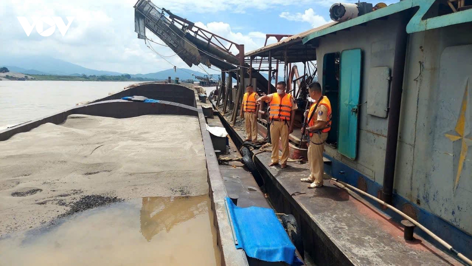 VOV.VN - Ngày 27/8, thông tin từ Cục Cảnh sát giao thông (CSGT) cho biết, tổ công tác do Thủy đoàn I (Cục CSGT) chủ trì, phối hợp với Phòng Cảnh sát giao thông Công an thành phố Hà Nội, Công an tỉnh Hòa Bình, Công an tỉnh Phú Thọ và Công an huyện Ba Vì kiểm tra, phát hiện các vi phạm trên của phương tiện khai thác cát trên sông Đà.