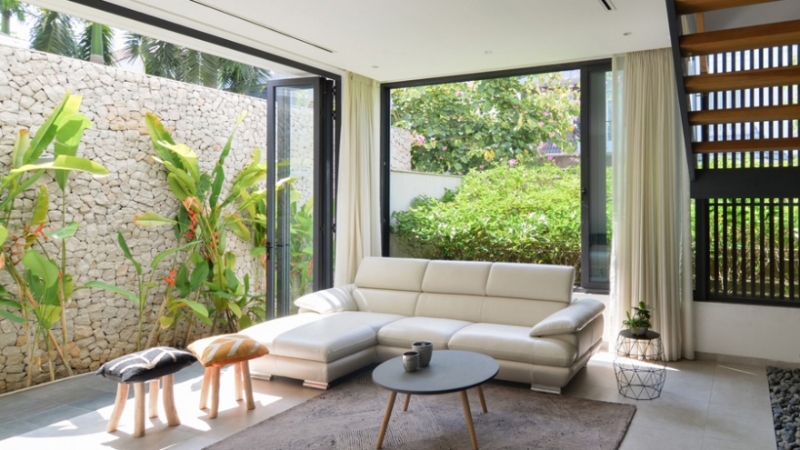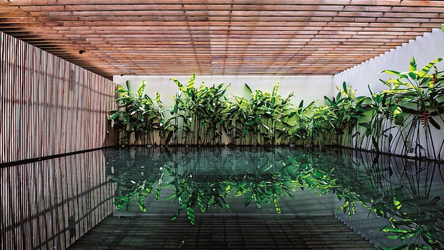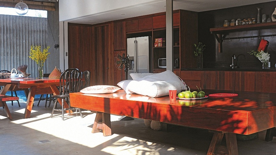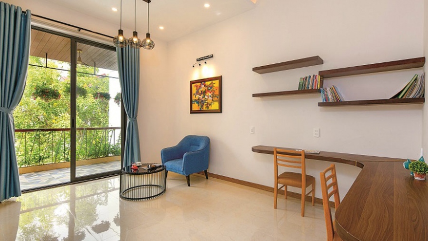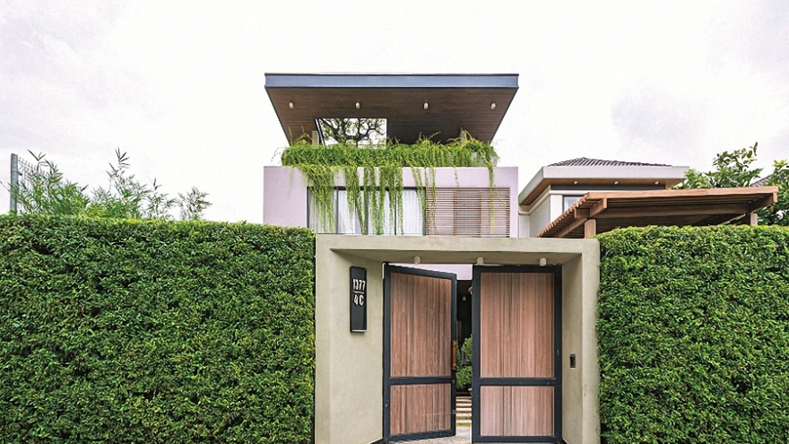 VOV.VN - Ngôi biệt thự được thiết kế, xây dựng vừa mang nét hiện đại, vừa mang nét dân gian truyền thống, là nơi ở và làm việc của một cặp vợ chồng kiến trúc sư.
