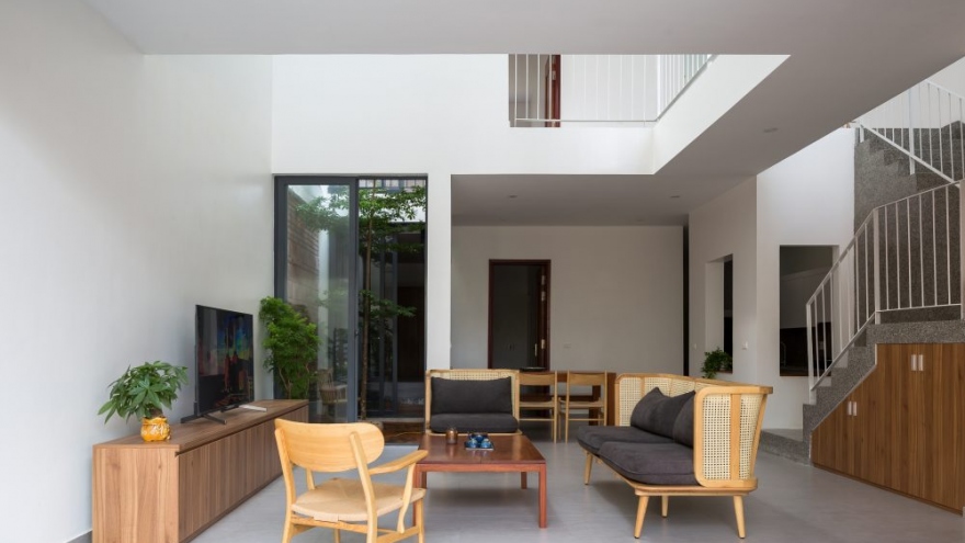 VOV.VN - Địa hình là một mảnh đất dài và hẹp, bằng khả năng sáng tạo của mình, nhà thiết kế đã cho ra đời một tác phẩm kiến trúc kỳ lạ với bên ngoài mờ đục còn bên trong vô cùng thoáng mát, thư giãn.