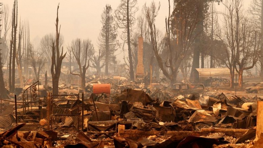 VOV.VN - Đám cháy rừng Dixie đang tiếp tục tàn phá miền Bắc bang California, Mỹ, thiêu rụi hơn 1.700 km2 diện tích đất rừng kể từ khi bùng phát vào giữa tháng 7 và có nguy cơ tiếp tục lan rộng.