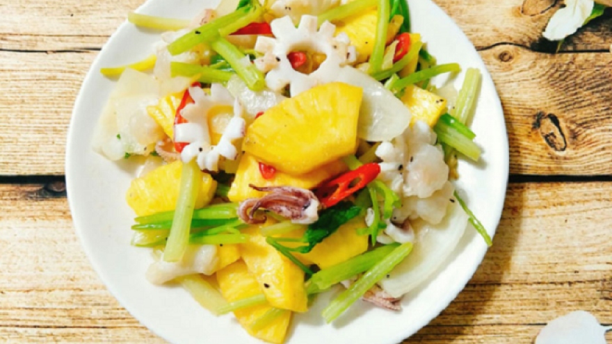VOV.VN - Món mực xào dứa thơm ngon, mực giòn ngọt, dai sần sật, dứa chua chua ngọt ngọt đậm đà nghe thì hấp dẫn đấy, nhưng không phải ai cũng biết cách làm mực không bị tanh.