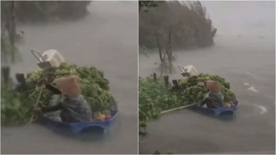 VOV.VN - Giữa cơn mưa giông mịt mù tầm nhìn không quá 10 mét, người phụ nữ với thân hình nhỏ nhắn ấy vẫn cố neo mình trên chiếc ghe chở đầy ắp những nải chuối để mưu sinh