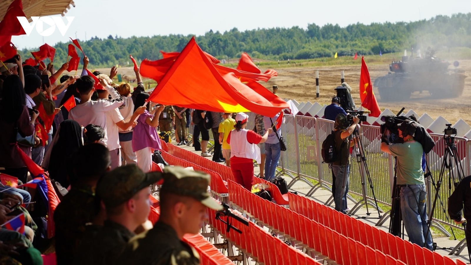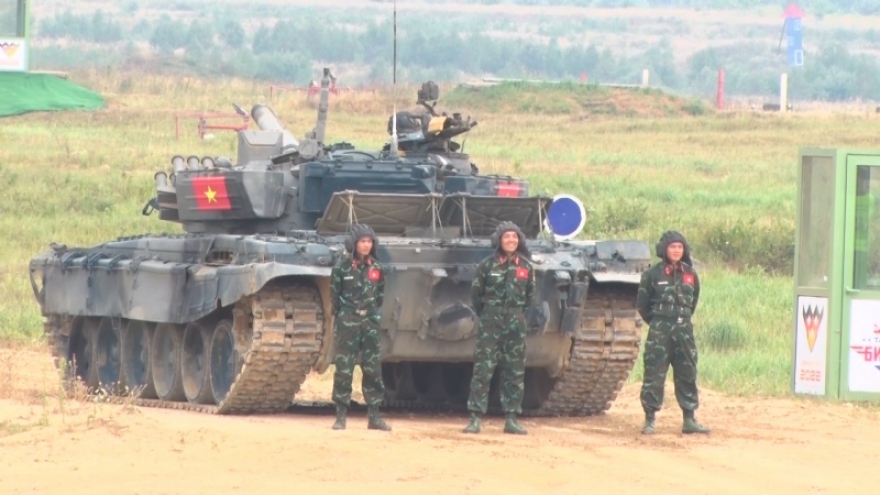 VOV.VN - Chiều 13/8, tại thao trường Alabino, ngoại ô Moscow, LB Nga, đội tuyển xe tăng Quân đội nhân dân Việt Nam đã xuất quân tham gia thi đấu trận đầu tiên tại môn thi Tank biathlon.