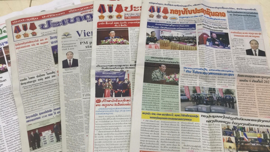 VOV.VN - Ngoài các tờ báo lớn, các chương trình phát sóng của Đài phát thanh quốc gia, Đài truyền hình quốc gia của Lào liên tục đăng tải các hình ảnh liên quan đến chuyến thăm của Chủ tịch nước Nguyễn Xuân Phúc.