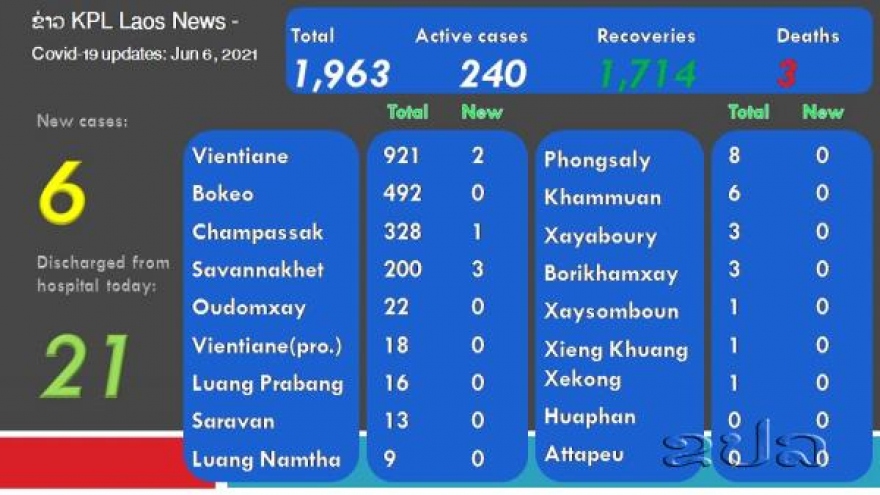 VOV.VN - Với 7 trong tổng số 9 ca mắc mới Covid-19 trên cả nước trong ngày 4/6, thủ đô Vientiane của Lào tiếp tục bị phong tỏa thêm 14 ngày, từ nay đến 19/6.