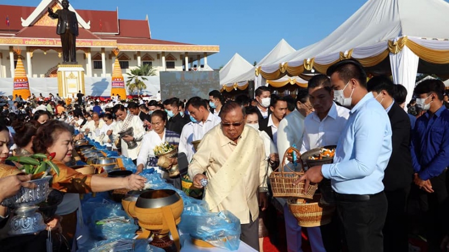 VOV.VN - Các hoạt động kỷ niệm 100 năm ngày sinh của Chủ tịch Kaysone Phomvihan được tổ chức theo nghi thức tôn giáo, do 113 nhà sư chủ trì tại khuôn viên Bảo tàng Kaysone Phomvihan.