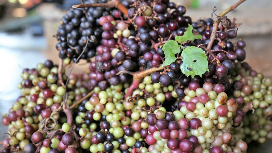 VOV.VN - Từ một loại trái cây dại, giờ đây nho rừng trở thành đặc sản được nhiều người săn đón. Loại nho rừng có màu đen, vỏ dày, quả tròn hiện được giới nội trợ Hà thành săn lùng khắp các chợ mạng. Nhiều người còn mạnh tay đặt mua cả chục cân về ngâm dùng dần.
