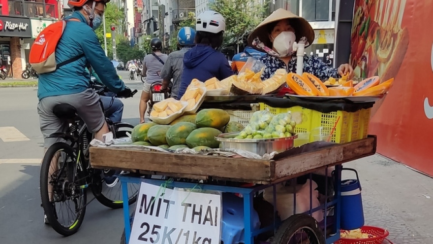 VOV.VN - Dù bán ở lề đường nhưng mít ruột đỏ có giá tới 70.000 đồng/kg. Một số mít ruột vàng nhưng khi bôi vôi ở đầu để chống nhiễm khuẩn cũng chuyển sang màu đỏ nên một số điểm cũng rao bán mít đỏ giá rẻ nhưng thực chất vẫn là mít ruột vàng.