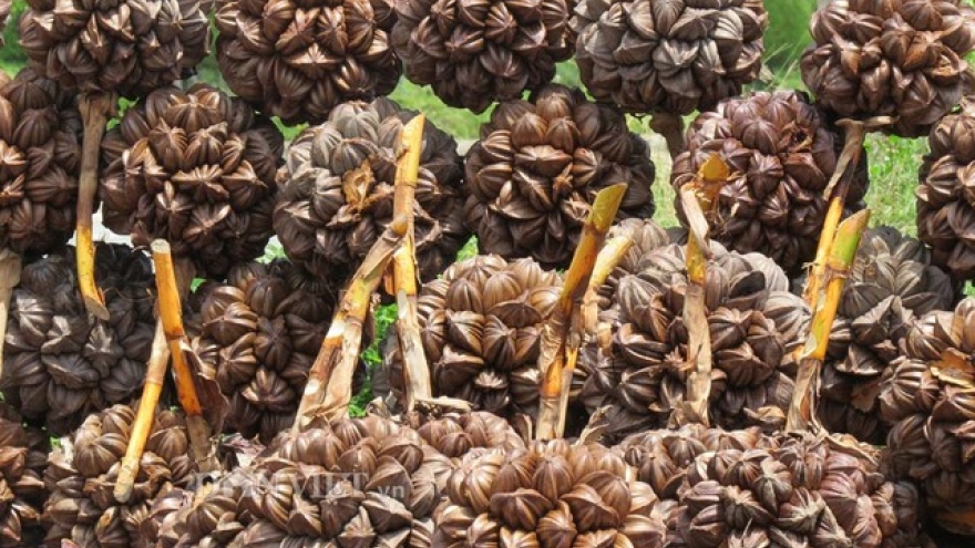 VOV.VN - Ngoài việc lấy lá để lợp nhà, dừng vách, chằm cà vung, làm lá chằm đóp, xây bồ lúa, gói bánh cà bắp, róc lạt, chẻ dây… cây dừa nước còn trổ buồng, ra trái. Trái dừa nước là một loại đặc sản mang đậm hương vị của miền quê sông nước Cà Mau.
