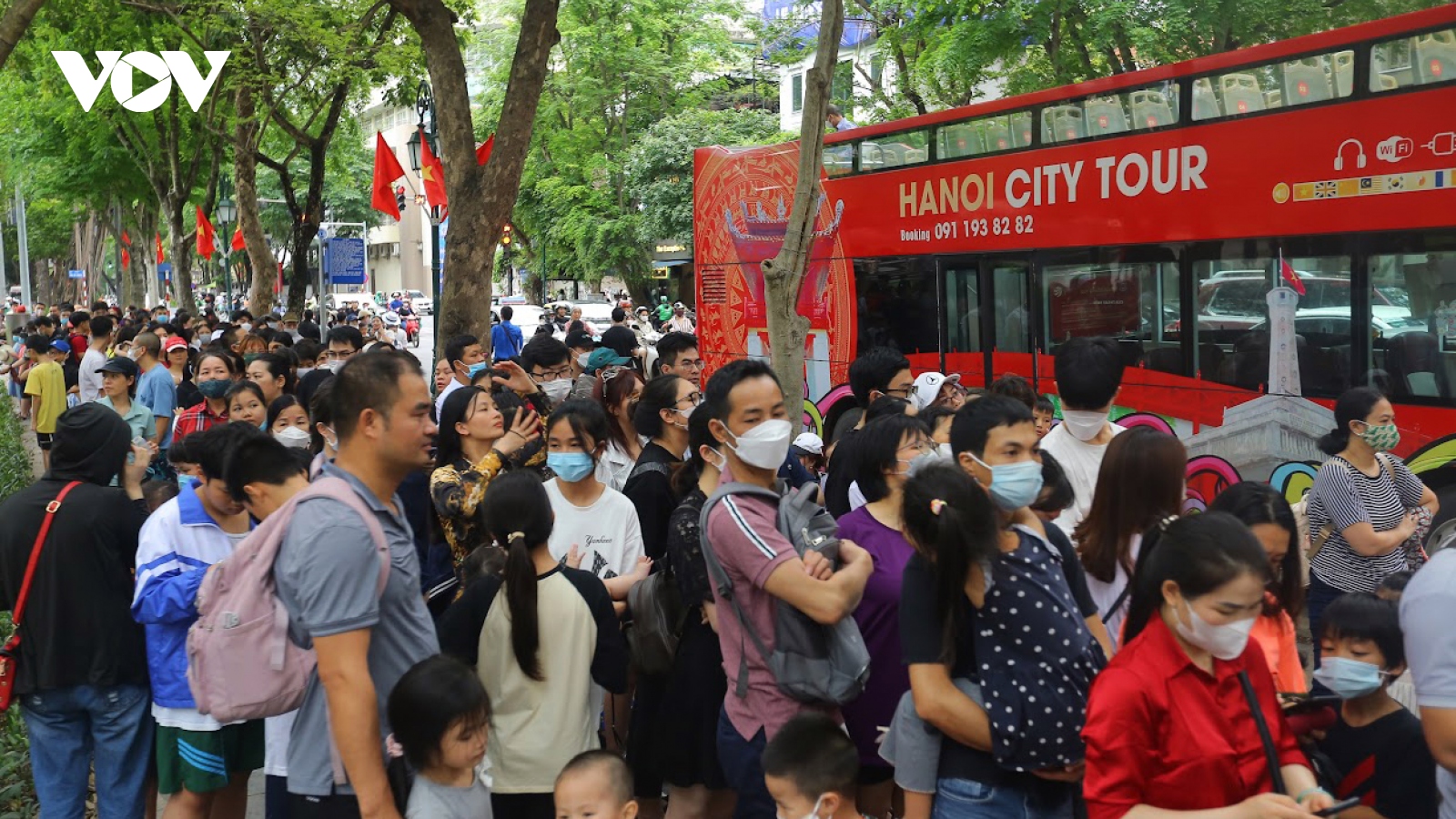 Người dân xếp hàng chờ đợi trải nghiệm xe buýt 2 tầng miễn phí trong dịp lễVOV.VN - Giữa tiết trời oi bức, hàng dài người dân vẫn kiên nhẫn chờ đợi để được trải nghiệm chuyến đi miễn phí trên xe bus 2 tầng.