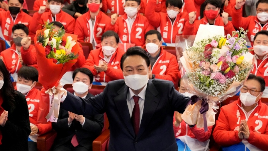 VOV.VN - Rạng sáng 10/3, ứng cử viên Yoon Suk-yeol của đảng Sức mạnh Quốc dân (PPP) đối lập chính tại Hàn Quốc đã giành chiến thắng trong cuộc bầu cử Tổng thống lần thứ 20 tại nước này. Ông vừa có cuộc họp báo tại trụ sở Quốc hội, tuyên bố chiến thắng và kêu gọi sự kết đất nước.