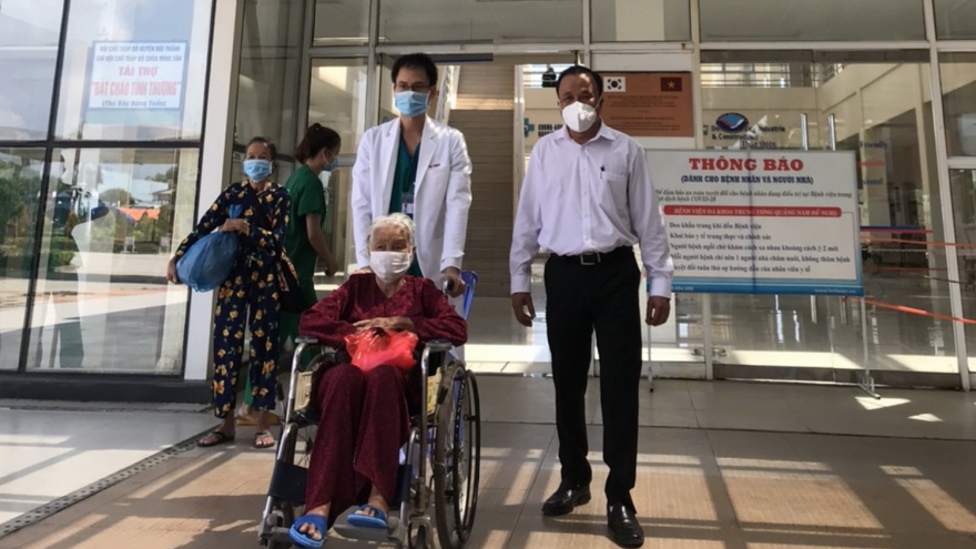 VOV.VN - Sáng 12/9, Bệnh viện Đa khoa Trung ương Quảng Nam cho xuất viện thêm 5 bệnh nhân mắc Covid-19 đã khỏi bệnh, trong đó có cụ bà 100 tuổi với nhiều bệnh nền nặng.