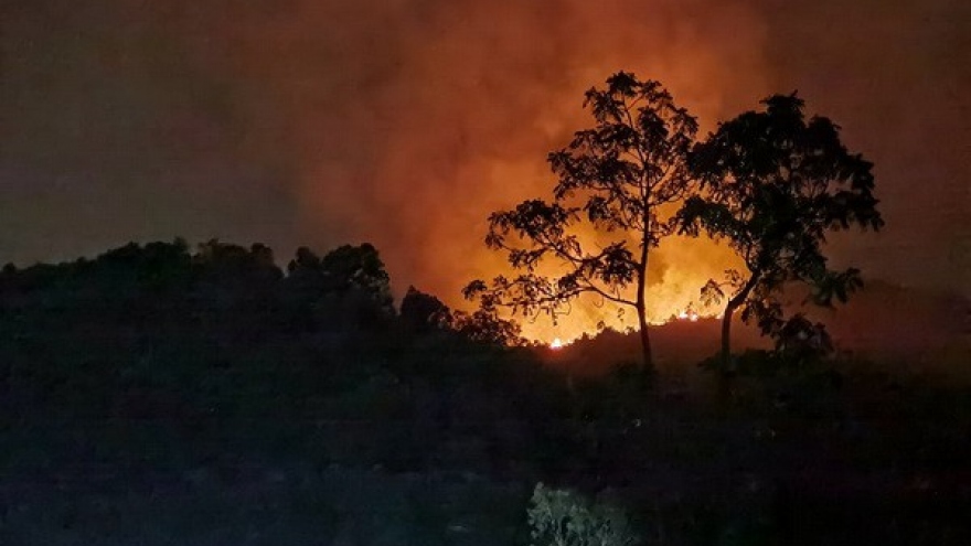 VOV.VN - Vụ cháy rừng xảy ra từ chiều 25/5 tại núi Sọ, xã Hòa Sơn, huyện Hòa Vang, Đà Nẵng đến sáng nay 26/5 vẫn chưa thể dập tắt và đang tiếp tục lan rộng.