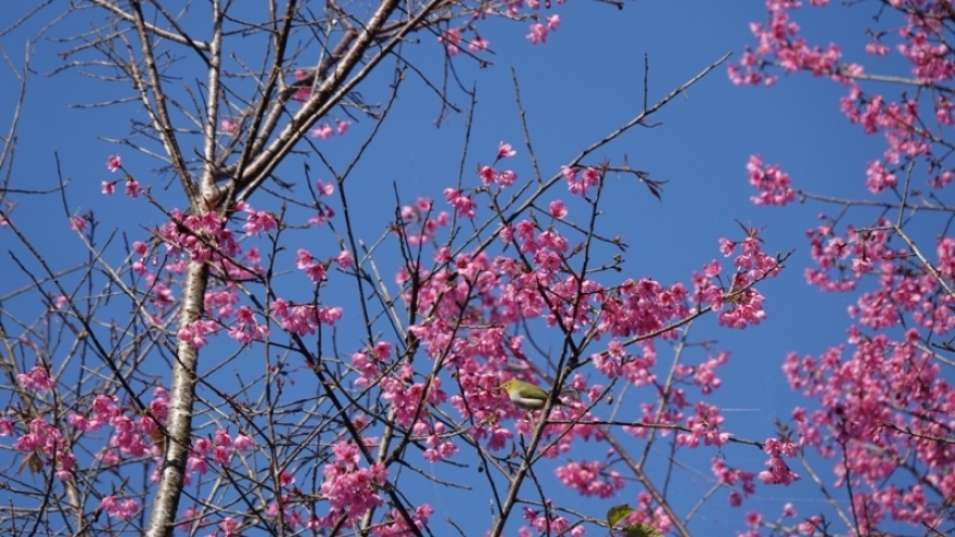 VOV.VN - Lên vùng cao Mù Cang Chải, Yên Bái, ngoài Di tích quốc gia đặc biệt Danh lam thắng cảnh Ruộng bậc thang, du khách khó có thể bỏ qua những vạt hoa Tớ dày nở đỏ thắm các sườn đồi.