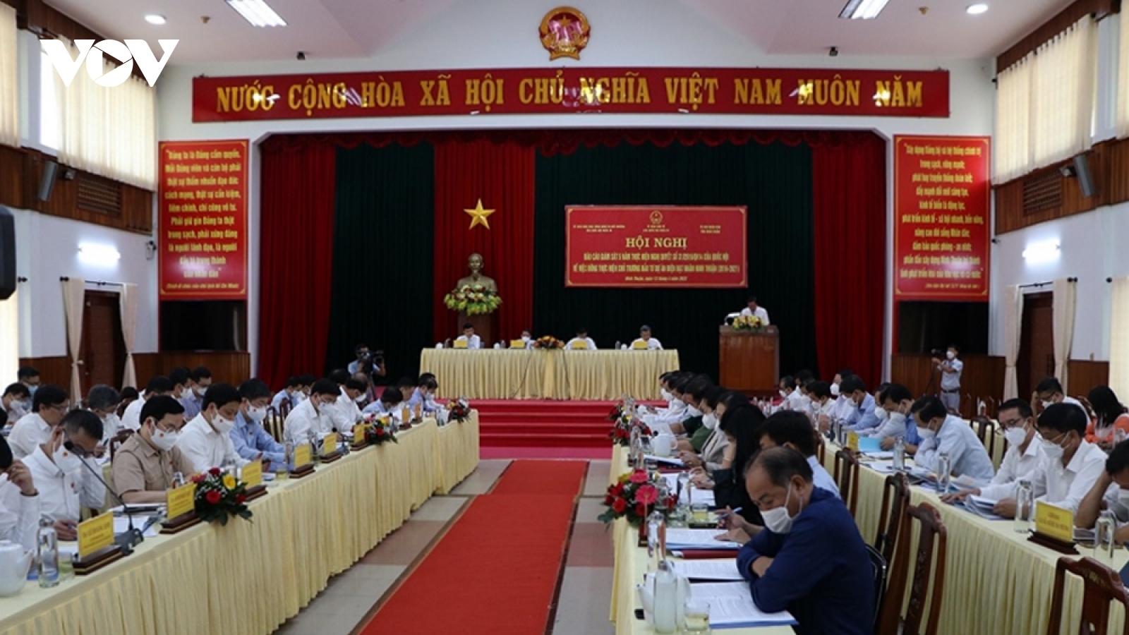 VOV.VN - Ngày 13/4, Đoàn công tác của Quốc hội do ông Nguyễn Đức Hải, Phó Chủ tịch Quốc hội làm trưởng đoàn cùng với UBND tỉnh Ninh Thuận tổ chức Hội nghị về giám sát 5 năm thực hiện Nghị quyết số 31 của Quốc hội về việc dừng thực hiện chủ trương đầu tư dự án điện hạt nhân Ninh Thuận (2016-2021).