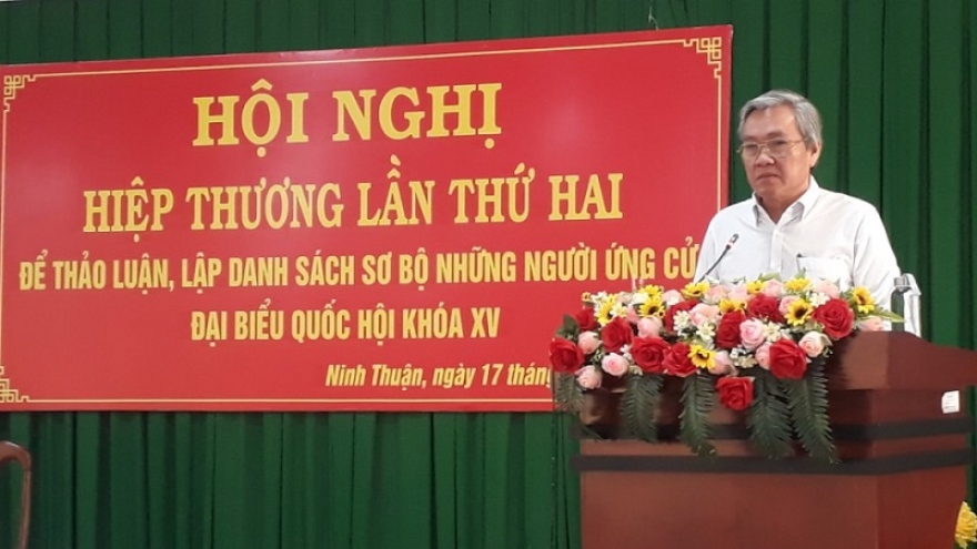 VOV.VN - Sáng 17/3, Ủy ban MTTQVN tỉnh Ninh Thuận tổ chức Hội nghị Hiệp thương lần thứ hai, lập danh sách sơ bộ những người ứng cử đại biểu Quốc hội khoá XV và đại biểu HĐND tỉnh nhiệm kỳ 2021-2026.