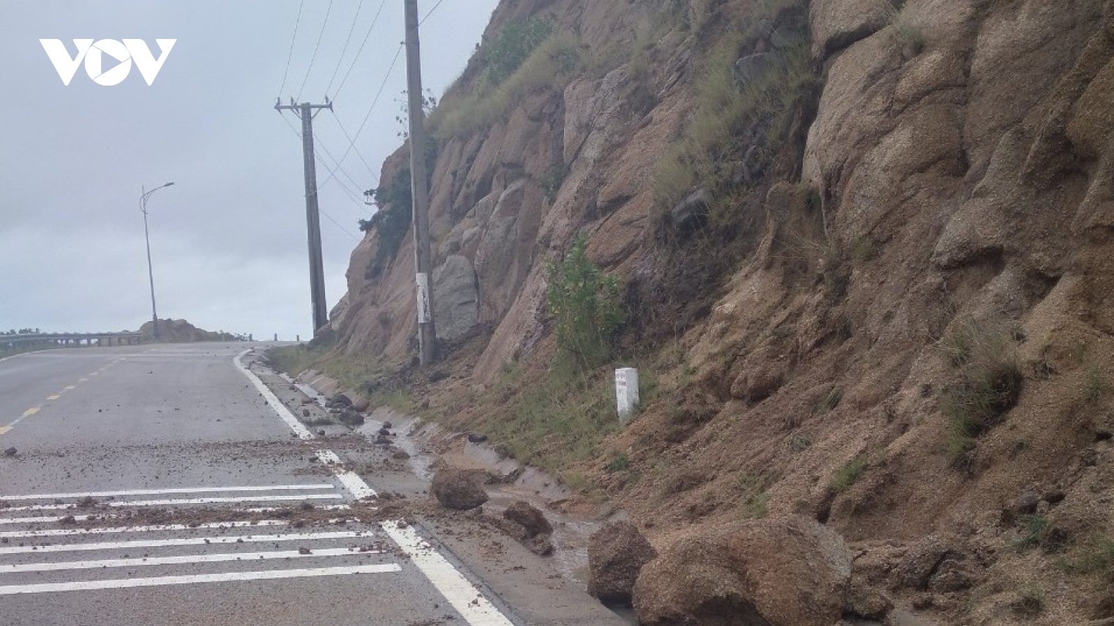VOV.VN - Mưa lớn trong 3 ngày qua khiến nhiều đoạn thuộc tuyến đường ven biển tỉnh Ninh Thuận bị sạt lở. Ban An toàn giao thông tỉnh Ninh Thuận chiều nay (21/11) cho biết, đã điều động lực lượng và phương tiện xử lý đống đất đá gây mất an toàn giao thông.