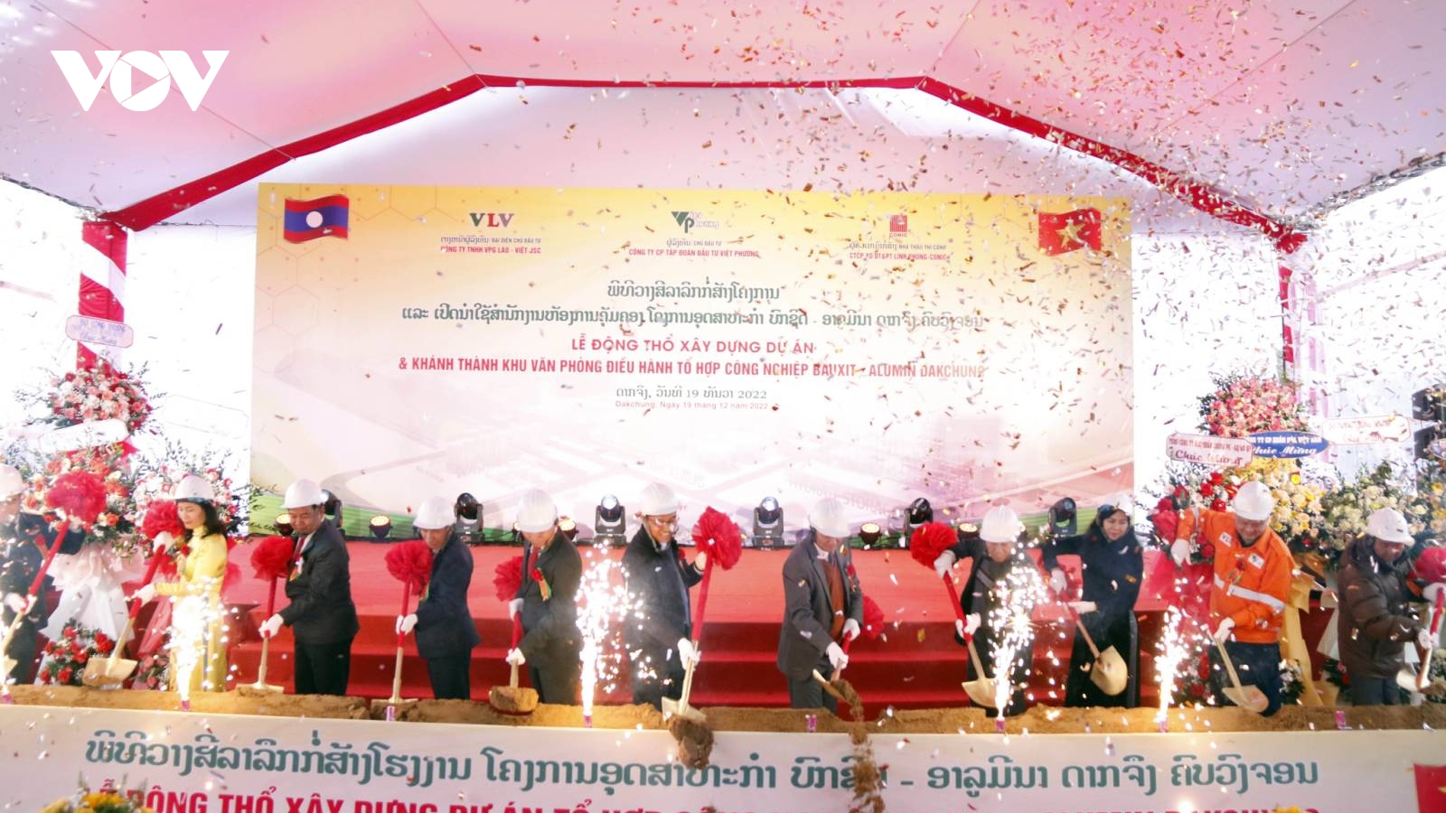 VOV.VN - Chiều 19/12, tại huyện Dakcheung, tỉnh Sekong, Nam Lào diễn ra Lễ động thổ và khánh thành khu văn phòng điều hành tổ hợp công nghiệp Bauxit – Alumin Dakcheung. Đây là một trong những dự án có quy mô lớn nhất của doanh nghiệp Việt Nam tại Lào.