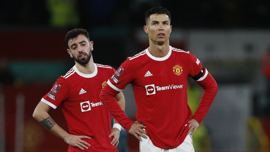 VOV.VN - Cristiano Ronaldo đá hỏng 11m trong thời gian thi đấu chính thức còn Anthony Elanga đá hỏng 11m trong loạt sút luân lưu khiến MU bị Middesbrough loại khỏi cuộc chơi tại vòng 4 FA Cup.