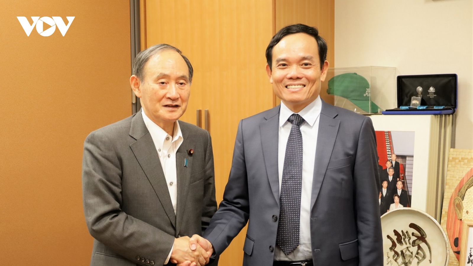 VOV.VN - Ngày 24/5, trong khuôn khổ chuyến thăm làm việc Nhật Bản, dự Hội nghị Tương lai châu Á lần thứ 28 tại Tokyo, Phó Thủ tướng Chính phủ Trần Lưu Quang đã có các cuộc gặp với nguyên Thủ tướng Nhật Bản Suga Yoshihide, Chủ tịch Liên minh Nghị sĩ hữu nghị Nhật – Việt Nikai Toshihiro và Chủ tịch Cơ quan Hợp tác quốc tế Nhật Bản (JICA) Tanaka Akihiko.