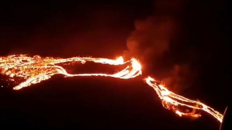 VOV.VN - Núi lửa Fagradalsfjall gần thủ đô Reykjavik của Iceland ngày 19/3 đã phun trào dung nham trong đêm sau hàng nghìn trận động đất nhỏ liên tiếp trong những tuần gần đây.