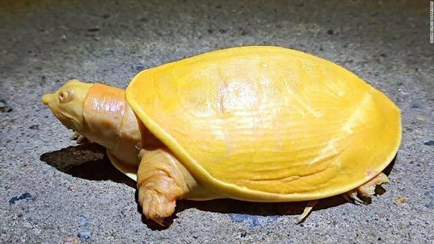 VOV.VN - Chú rùa này được một nông dân phát hiện ở phía Đông Ấn Độ. Các chuyên gia nói rằng màu sắc vàng óng bắt mắt của chú rùa là do chứng bạch tạng.