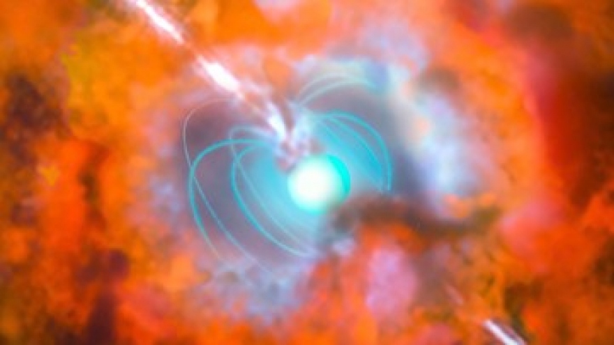 VOV.VN - Sóng vô tuyến này được phát hiện hôm 28/4 ở một ngôi sao chết trong dải ngân hà Milky Way có tên SGR 1935+2154, cách Trái Đất 30.000 năm ánh sáng.