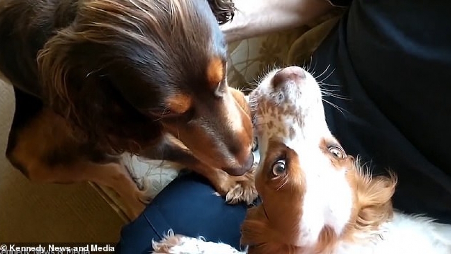 Bật cười hai chú chó đứng im như tượng khi tranh giành đồ chơiVOV.VN - Do lo sợ nếu di chuyển đồ chơi sẽ bị đối phương cướp mất nên hai chú chó đành đứng im như tượng và mỗi bên cứ thế ngoạm chặt một nửa món đồ.