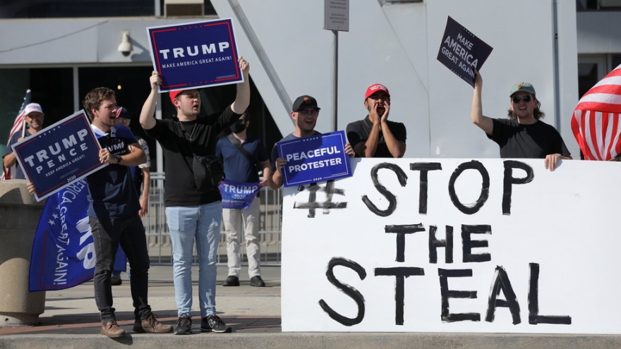 VOV.VN - Đoạn video được trích xuất từ camera ghi hình bên trong trung tâm kiểm phiếu State Farm Arena ở Atlanta, bang Georgia, cho thấy các nhân viên ở đây đang lấy các vali chứa phiếu bầu ở dưới gầm bàn và kiểm chúng.