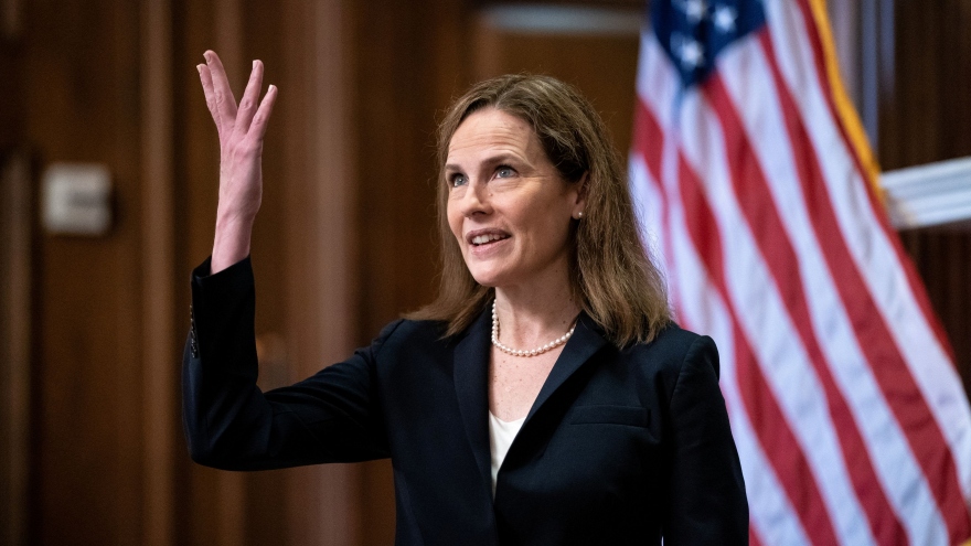 VOV.VN - Sau khi được Thượng viện phê chuẩn trở thành thẩm phán Tòa án Tối cao Mỹ, bà Amy Coney Barrett đã tuyên thệ nhậm chức trong một buổi lễ được tổ chức tại Nhà Trắng vào ngày 26/10.