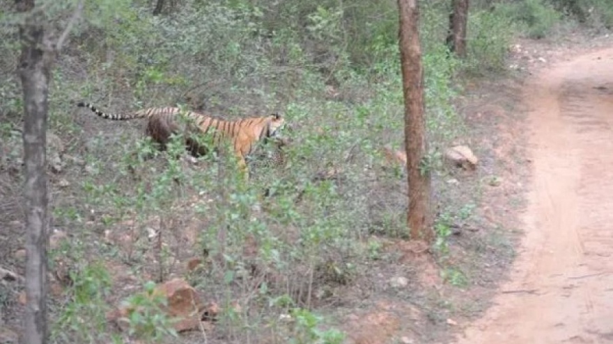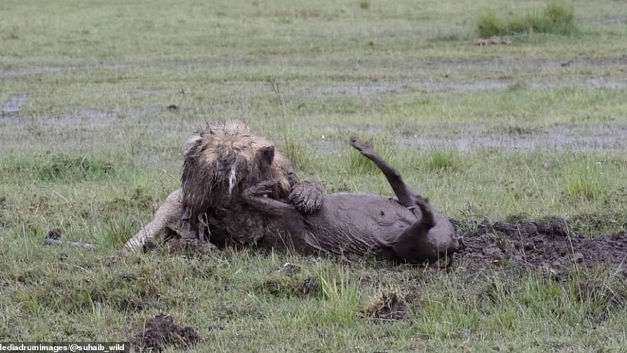 VOV.VN - Con hổ trèo lên cây rình báo đốm đang trú ẩn, sau đó nhanh chóng vồ con mồi ở khoảng cách hơn 3m. Hai bên quần thảo kịch liệt và trận chiến kết thúc nhanh chóng với kết quả là hổ tóm gọn con mồi.