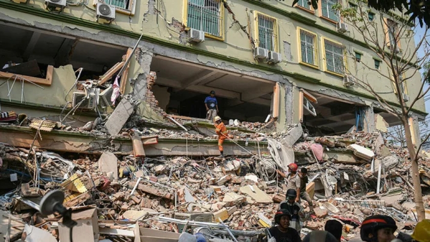 VOV.VN - Công cuộc tìm kiếm người sống sót tại những khu vực chịu ảnh hưởng nặng nề nhất ở Myanmar sau trận động đất mạnh 7,7 độ vẫn đang được thực hiện.