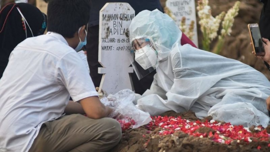 VOV.VN - Ngày 9/7, Indonesia tiếp tục chứng kiến bầu không khí tang thương khi số ca tử vong do Covid-19 đạt "kỷ lục" mới với 1.338 ca, số tăng cao nhất thế giới trong ngày.