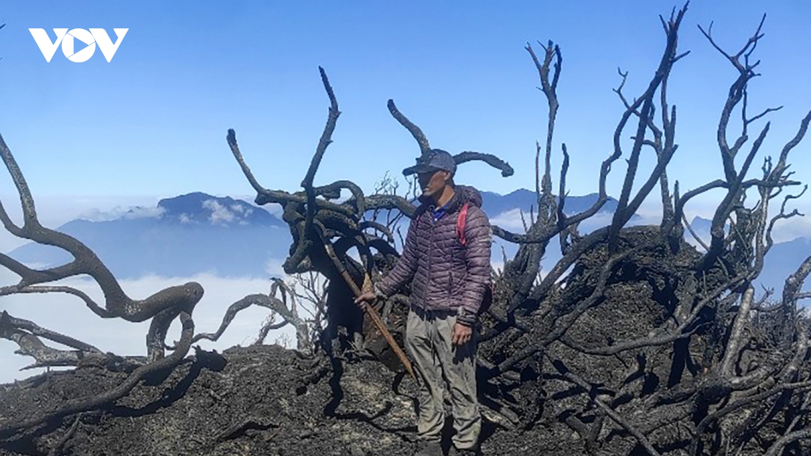 VOV.VN - Do địa hình rừng núi phức tạp, vách đá dựng đứng nên các lực lượng chỉ có thể tiếp cận từ xa và làm đường băng cản lửa để phòng tránh lửa lan rộng.