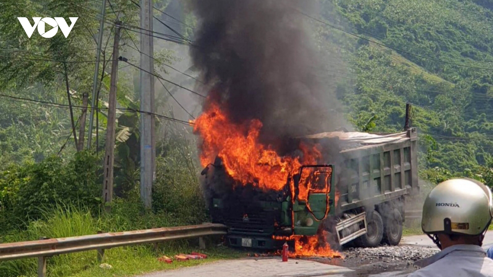 VOV.VN - Khoảng 10h sáng 25/8, tại km 2, quốc lộ 4D, thuộc địa phận thị trấn Phong Thổ, huyện Phong Thổ, tỉnh Lai Châu xảy ra vụ cháy xe tải nghiêm trọng, gây tắc đường cục bộ.