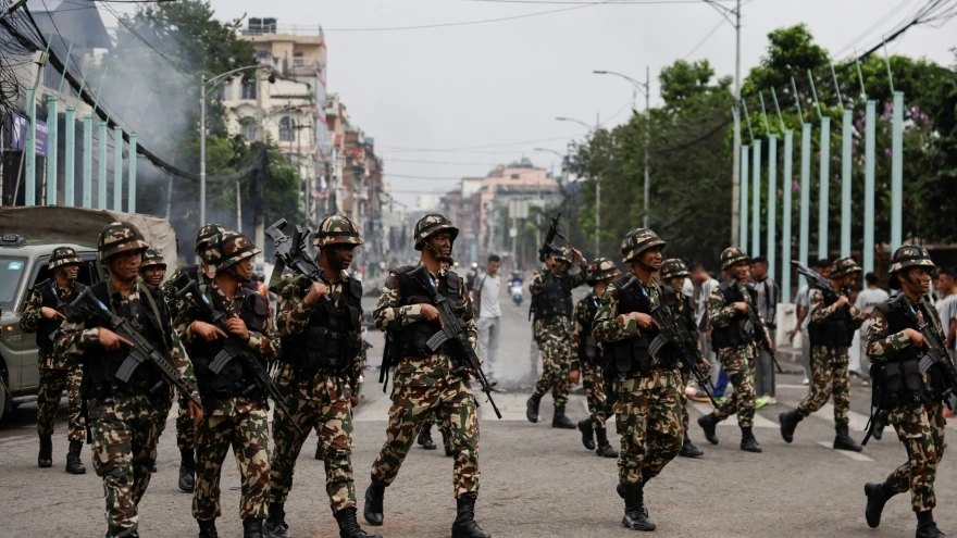 VOV.VN - Quân đội Nepal đã được triển khai để bảo vệ tòa nhà quốc hội và tuần tra trên các tuyến phố của thủ đô Kathmandu ngày 10/9, trong bối cảnh lệnh giới nghiêm được áp đặt sau 2 ngày biểu tình dữ dội khiến Thủ tướng K.P. Sharma Oli buộc phải từ chức.