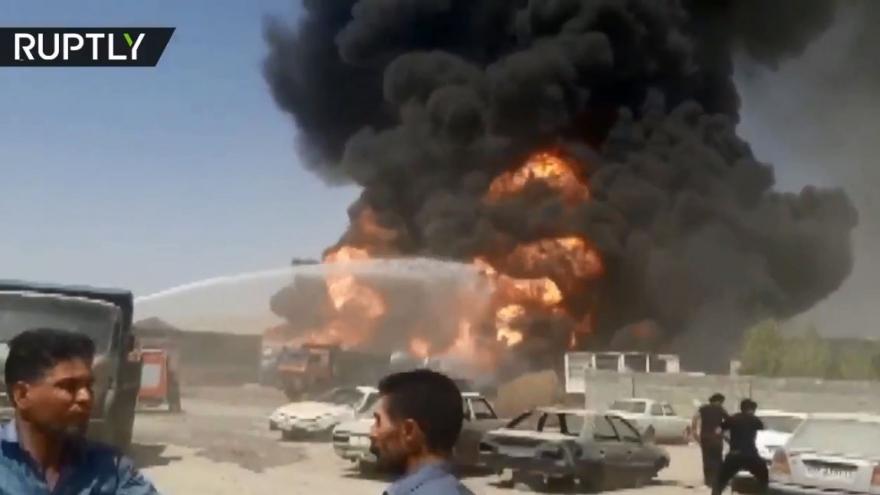 VOV.VN - Sau hàng loạt vụ nổ bí ẩn xảy ra ở các địa điểm nhạy cảm của Iran trong tháng qua, ngày 28/7, 6 xe chở nhiên liệu của nước này lại bốc cháy dữ dội.