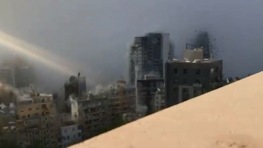 VOV.VN - Đoạn video dưới đây cho thấy khoảnh khắc vụ nổ kinh hoàng ở Beirut xảy ra đã tạo nên một "làn sóng" phá hủy khủng khiếp, xé toạc các tòa nhà cao tầng.