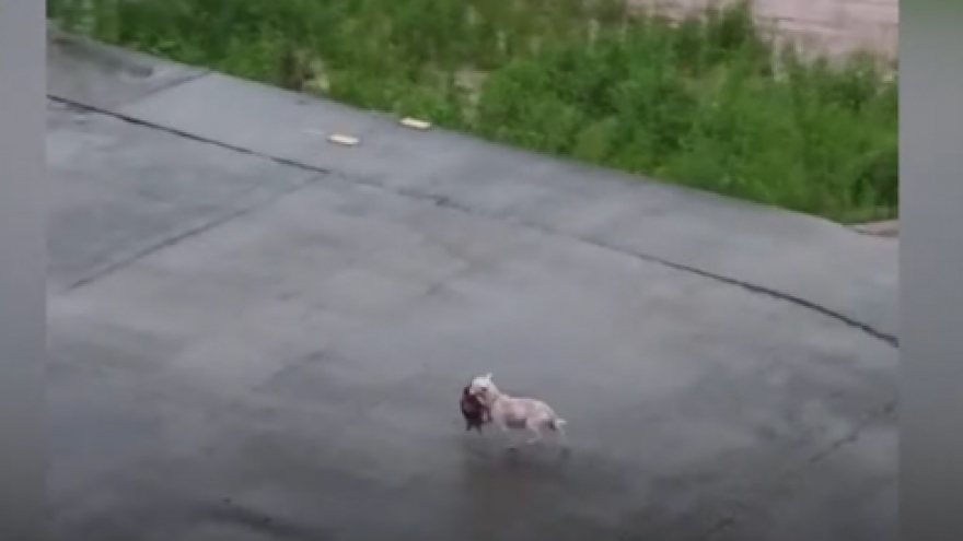 VOV.VN - Mặc dù 1 người cảnh sát đã ngăn lại nhưng chú chó mẹ này vẫn không ngại nguy hiểm bơi giữa dòng nước lũ để cứu con và đưa chúng vào bờ an toàn.