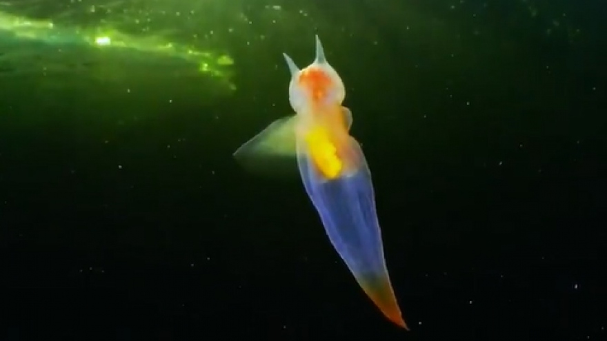VOV.VN - Thước phim hiếm có này đã ghi lại hình ảnh siêu thực của Clione Limacina - 1 loài thiên thần biển nằm trong nhóm động vật thân mềm ở Biển Trắng, Nga.