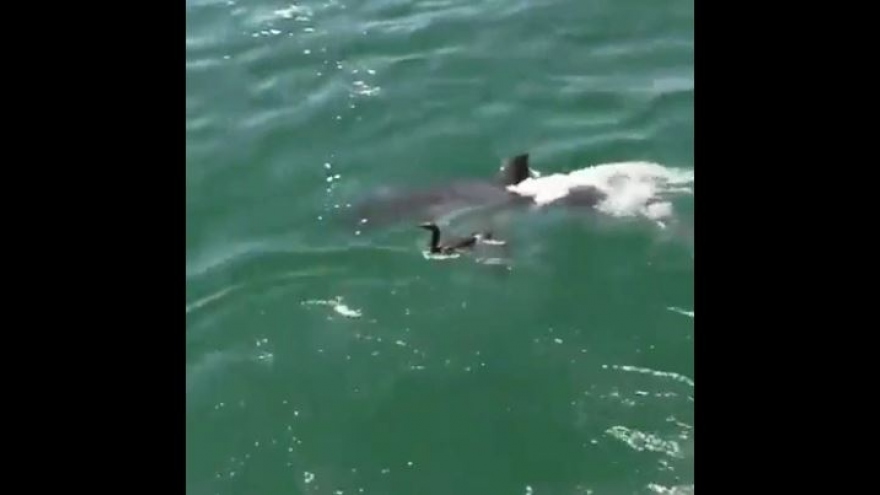 VOV.VN - Trong cuộc đua trên mặt nước bị cá mập truy đuổi gắt gao, chú chim may mắn này đã thoát chết trong gang tấc từ miệng kẻ săn mồi khét tiếng đại dương.